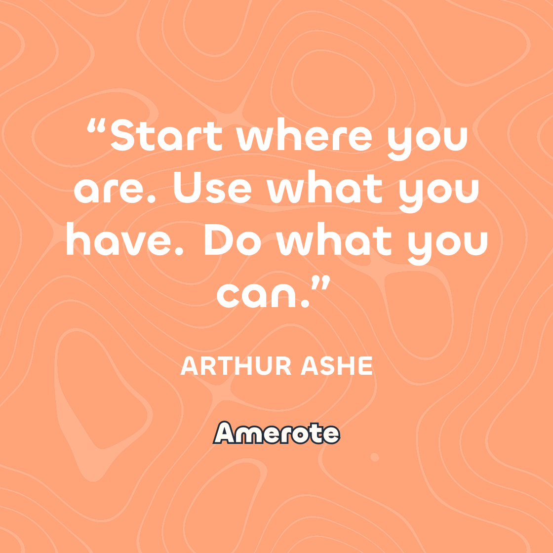 - “Start where you are. Use what you have. Do what you can.” — Arthur Ashe, quoted widely; Days of Grace (1993)