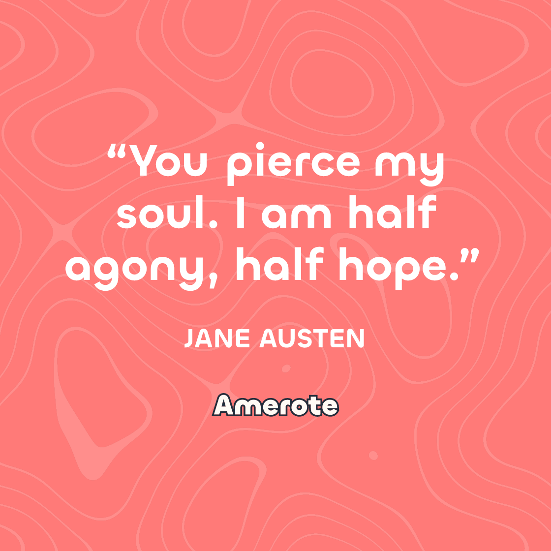 - “You pierce my soul. I am half agony, half hope.” — Jane Austen, Persuasion (1817)