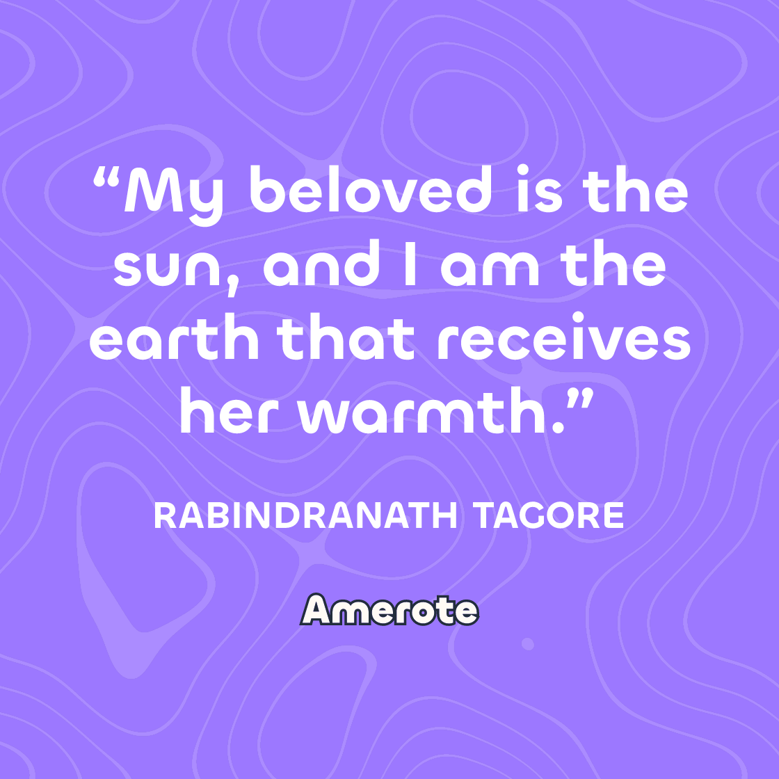 - “My beloved is the sun, and I am the earth that receives her warmth.” — Rabindranath Tagore, The Gardener (1913, India)