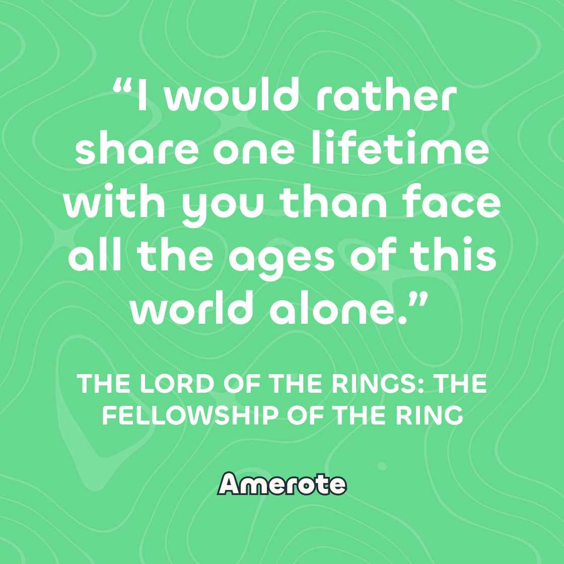 - “I would rather share one lifetime with you than face all the ages of this world alone.” — The Lord of the Rings: The Fellowship of the Ring (film, 2001; Arwen, screenplay by Walsh/Boyens/Jackson)