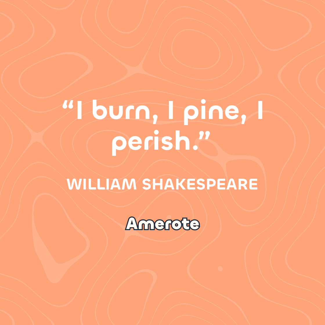 - “I burn, I pine, I perish.” — William Shakespeare, The Taming of the Shrew, Act 1, Sc. 1 (c. 1590–92)