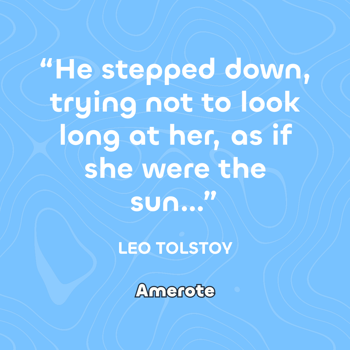 - “He stepped down, trying not to look long at her, as if she were the sun…” — Leo Tolstoy, Anna Karenina (1877; trans. Pevear/Volokhonsky)