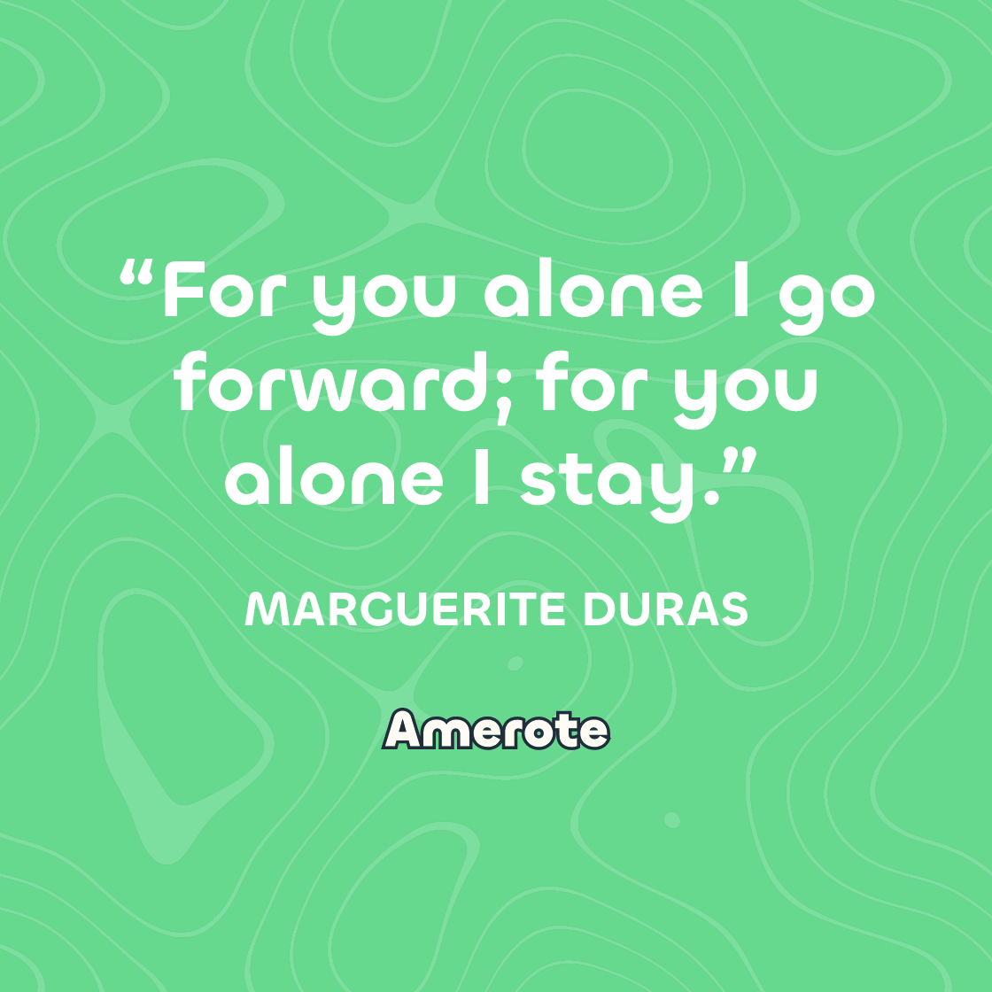 - “For you alone I go forward; for you alone I stay.” — Marguerite Duras, The Lover (1984)