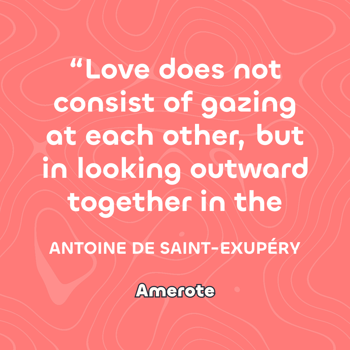 - “Love does not consist of gazing at each other, but in looking outward together in the same direction.” — Antoine de Saint-Exupéry, Wind, Sand and Stars (1939)