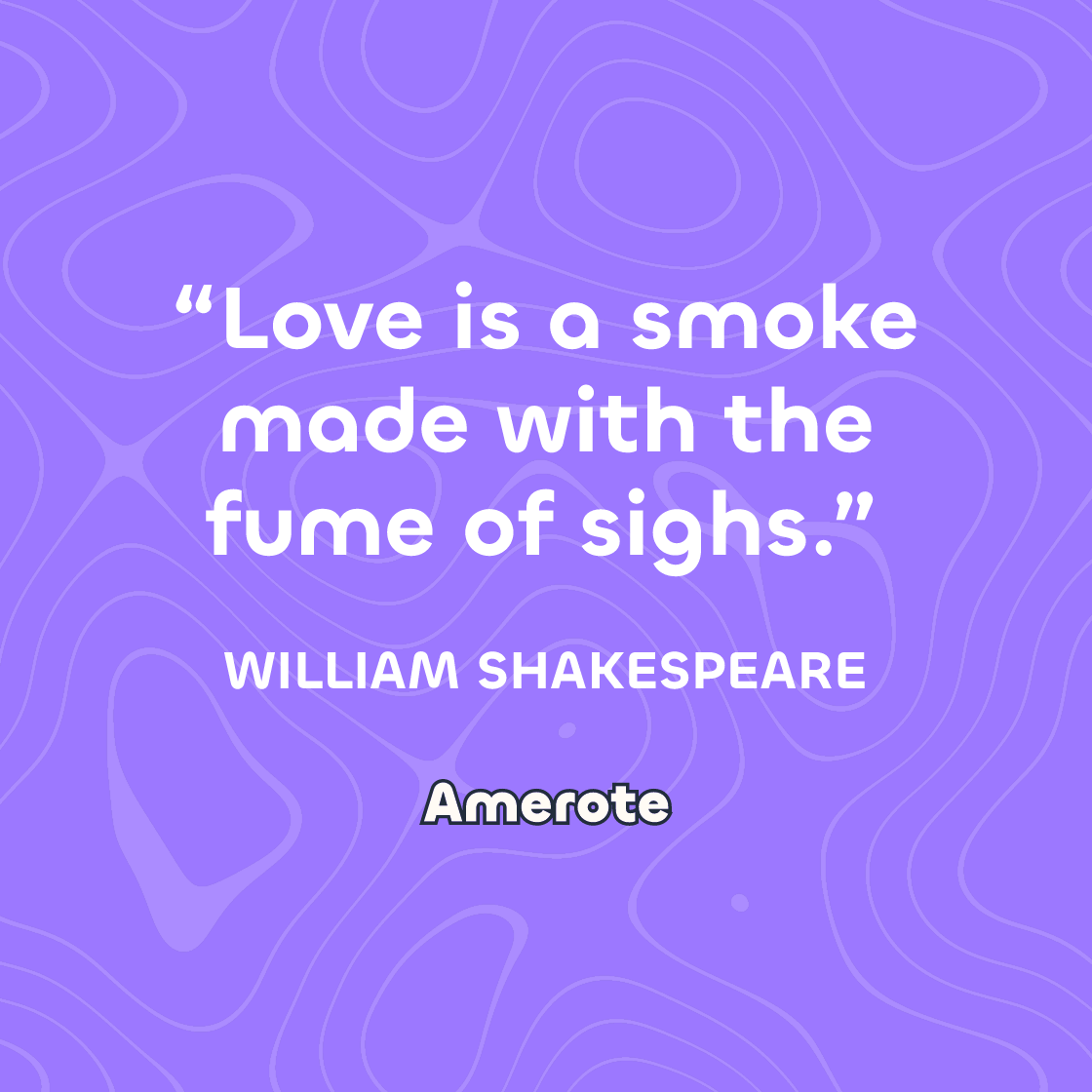 - “Love is a smoke made with the fume of sighs.” — William Shakespeare, Romeo and Juliet, Act 1, Sc. 1 (c. 1595)