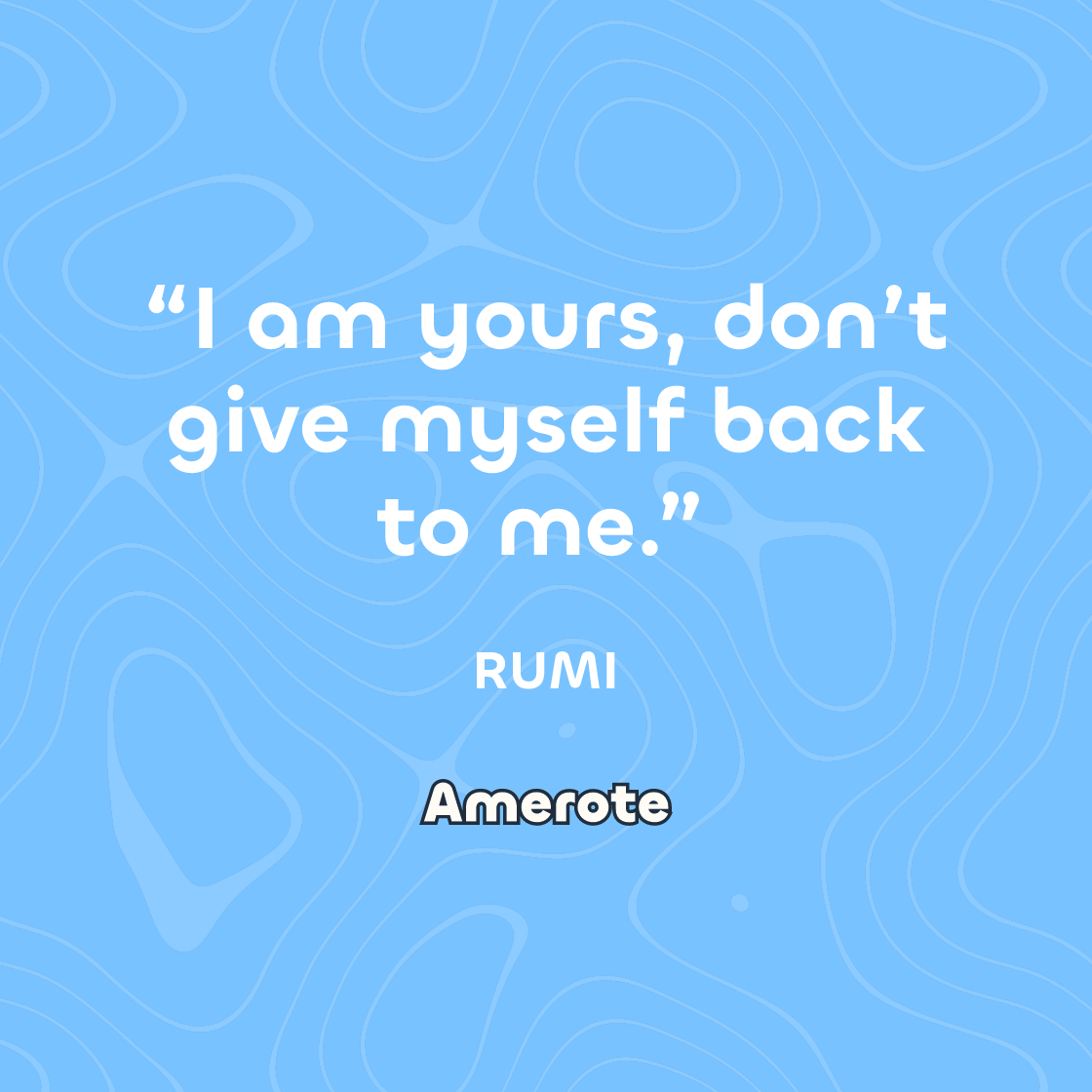 - “I am yours, don’t give myself back to me.” — Rumi, translated in various editions of Divan-e Shams (13th c.; translation varies)