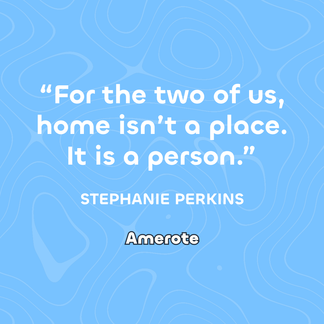 - “For the two of us, home isn’t a place. It is a person.” — Stephanie Perkins, Anna and the French Kiss (2010)