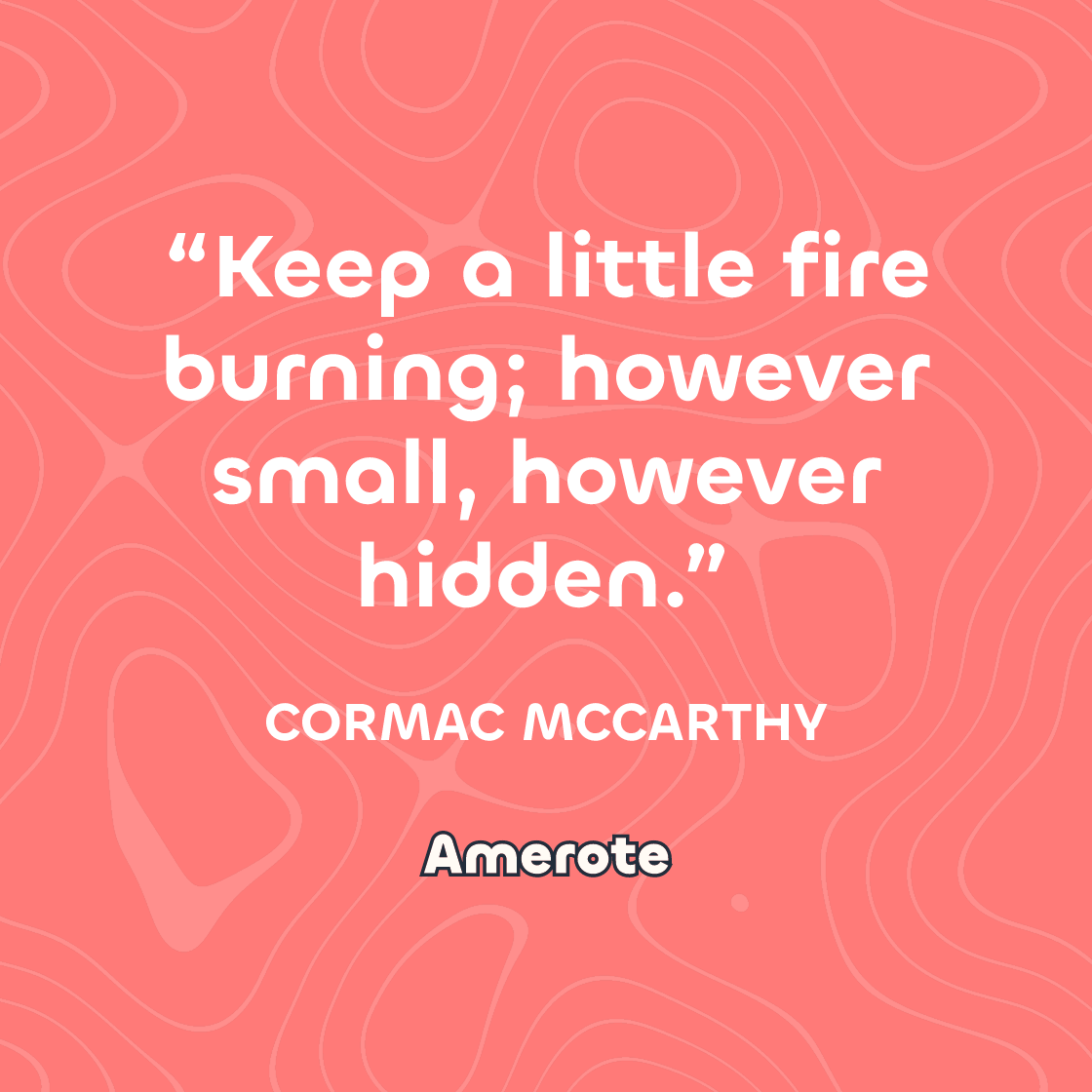 - “Keep a little fire burning; however small, however hidden.” — Cormac McCarthy, The Road (2006)