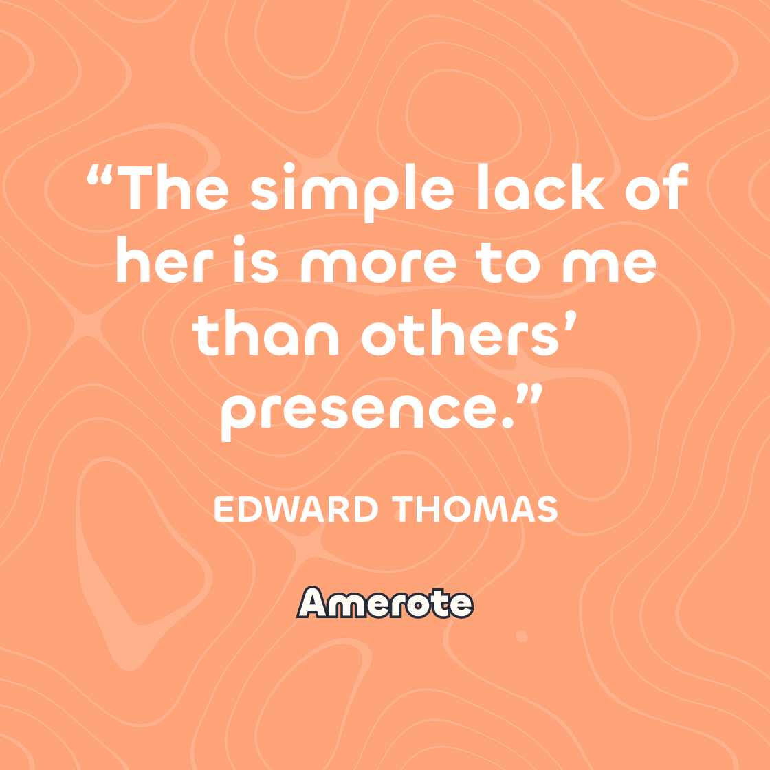 - “The simple lack of her is more to me than others’ presence.” — Edward Thomas, The Sun Used to Shine (1916)