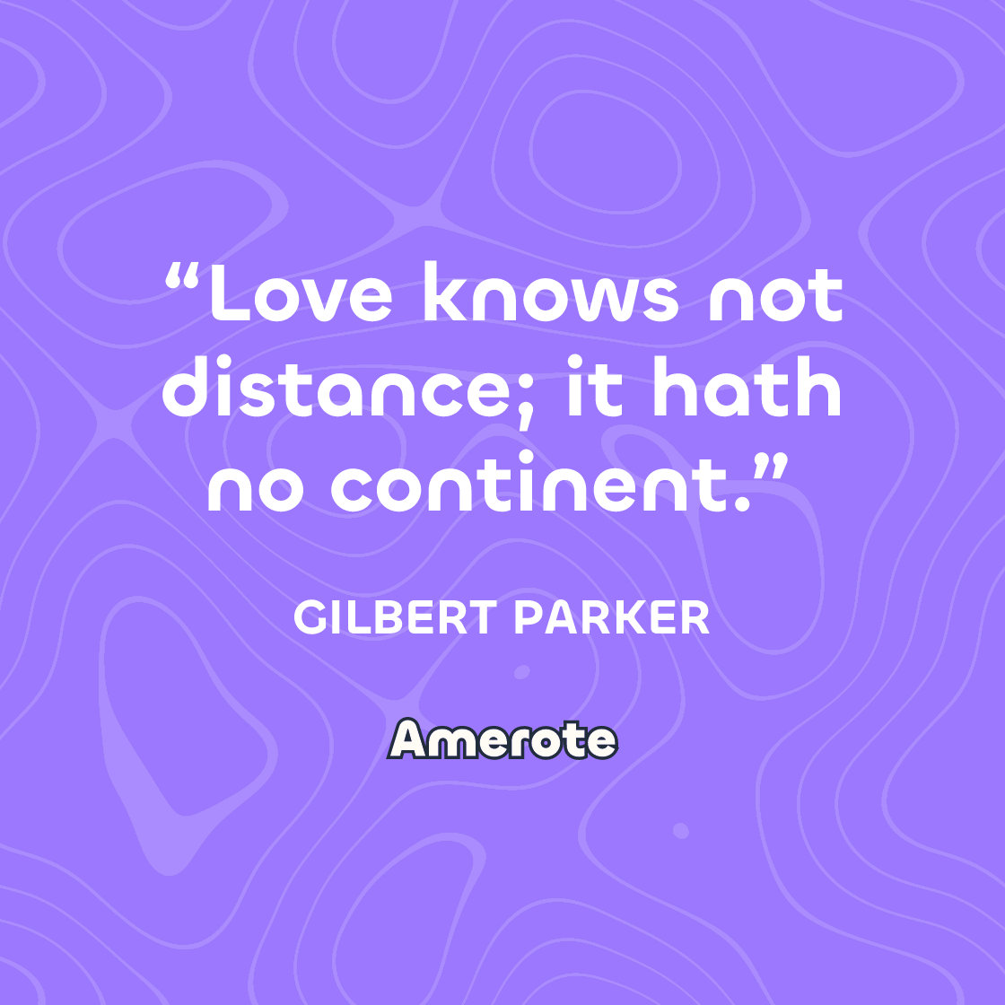 - “Love knows not distance; it hath no continent.” — Gilbert Parker, The Translation of a Savage (1894)