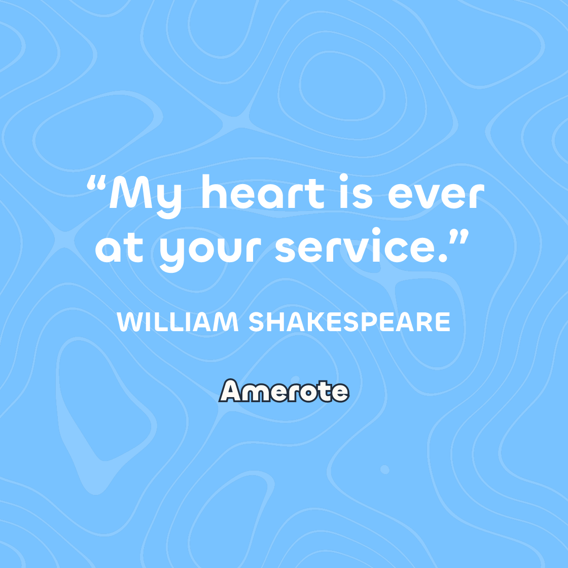- “My heart is ever at your service.” — William Shakespeare, Timon of Athens, Act 1 (c. 1607)