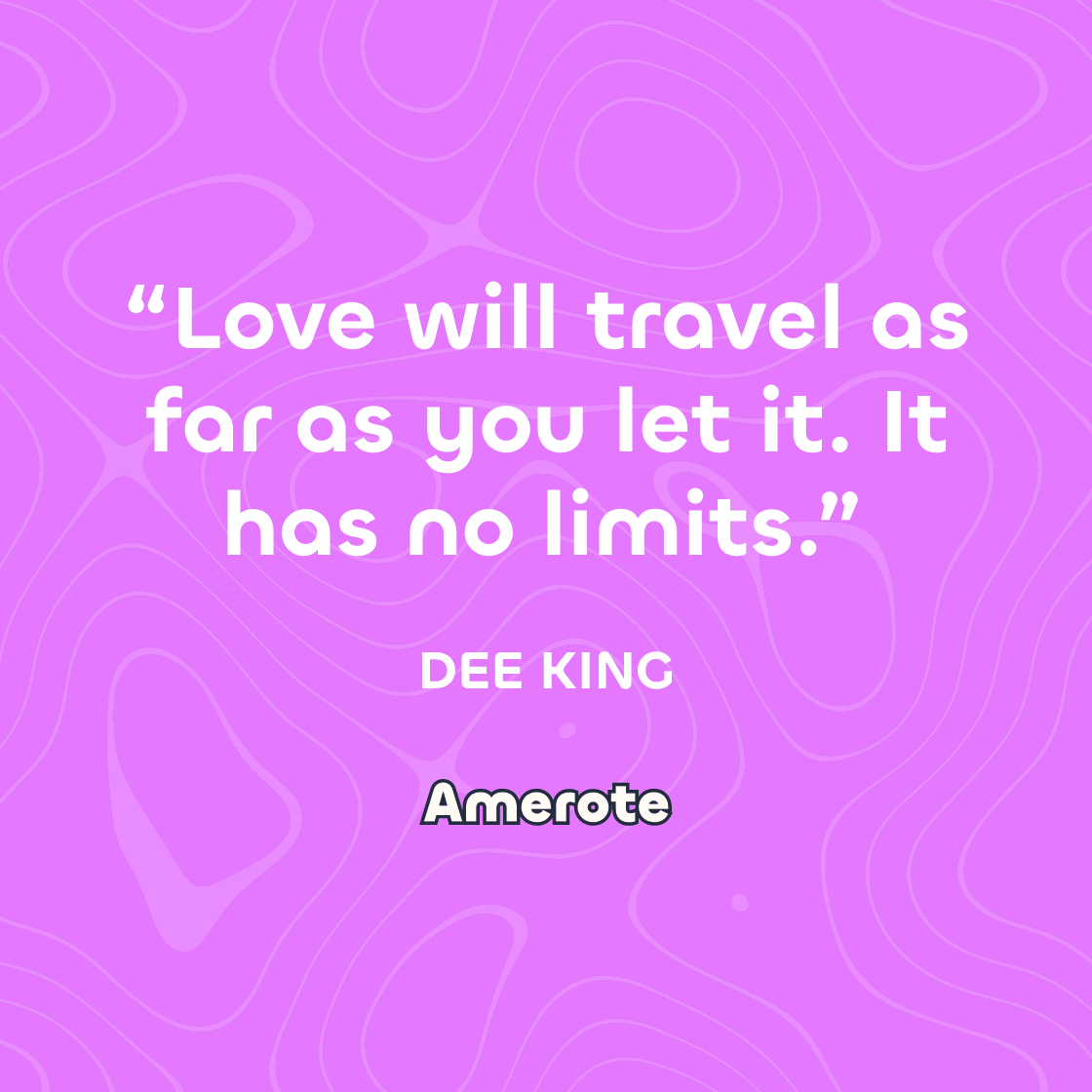 - “Love will travel as far as you let it. It has no limits.” — Dee King, Poems of Love and Letting Go (2009)