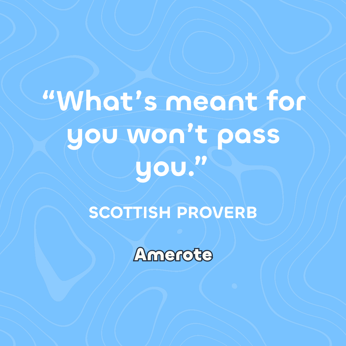 - “What’s meant for you won’t pass you.” — Scottish proverb (traditional; proverbial usage)
