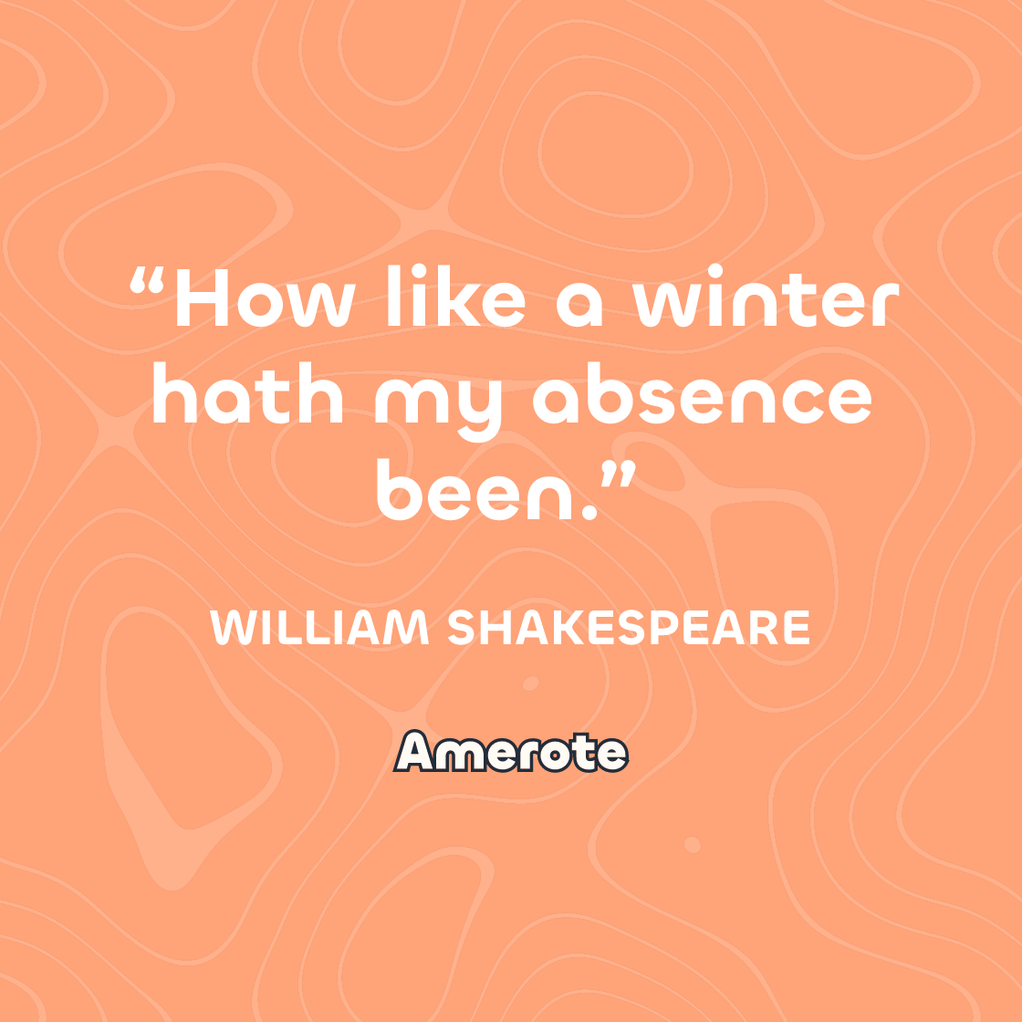 - “How like a winter hath my absence been.” — William Shakespeare, Sonnet 97 (1609)