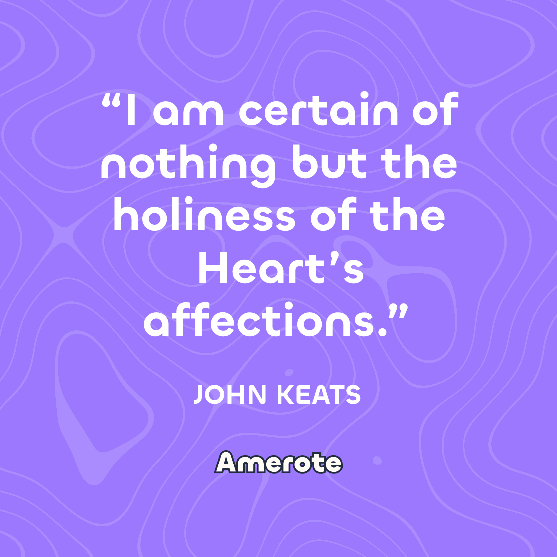 - “I am certain of nothing but the holiness of the Heart’s affections.” — John Keats, letter (1818)