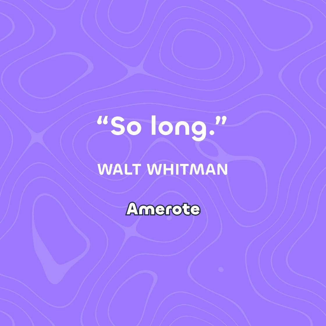- “So long.” — Walt Whitman, poem title/line (1860)