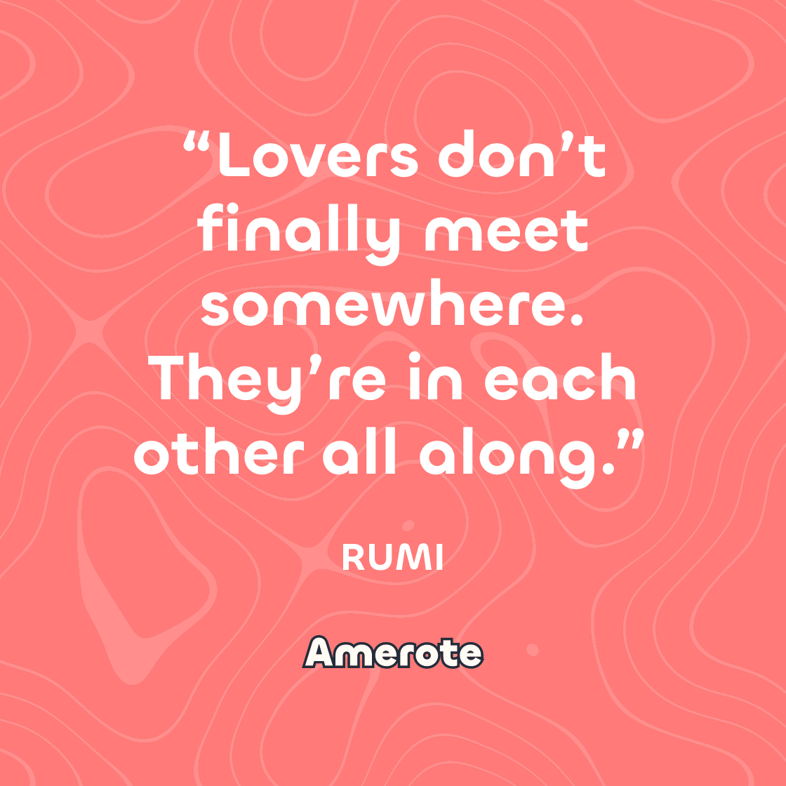 - “Lovers don’t finally meet somewhere. They’re in each other all along.” — Rumi, Masnavi (13th c.)
