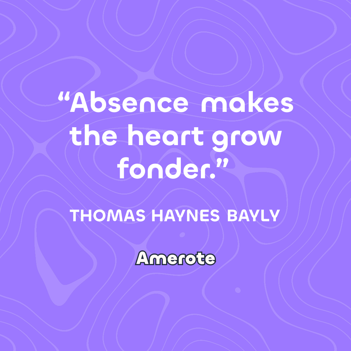 - “Absence makes the heart grow fonder.” — Thomas Haynes Bayly, Isle of Beauty (1830)
