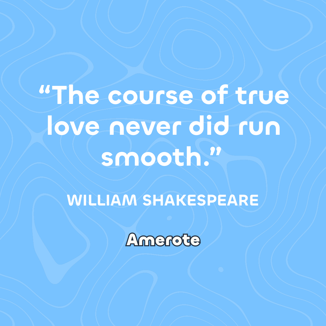 - “The course of true love never did run smooth.” — William Shakespeare, A Midsummer Night’s Dream, Act 1, Sc. 1 (c. 1595)