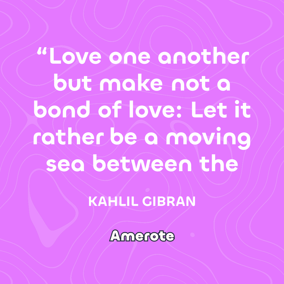 - “Love one another but make not a bond of love: Let it rather be a moving sea between the shores of your souls.” — Kahlil Gibran, The Prophet (1923)