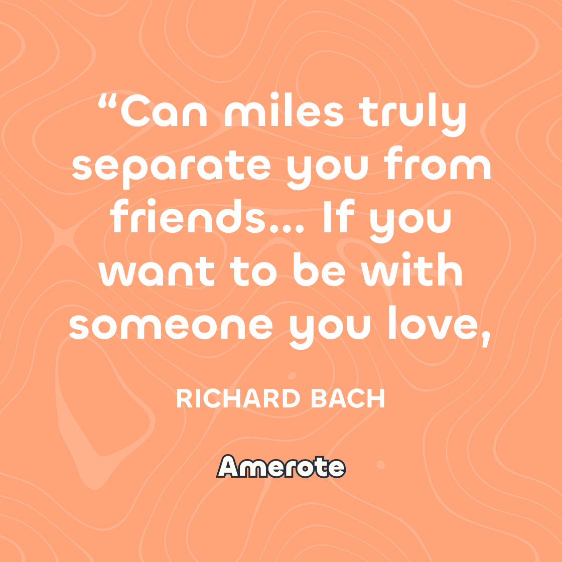 - “Can miles truly separate you from friends… If you want to be with someone you love, aren’t you already there?” — Richard Bach, There Is No Such Place as Far Away (1979)