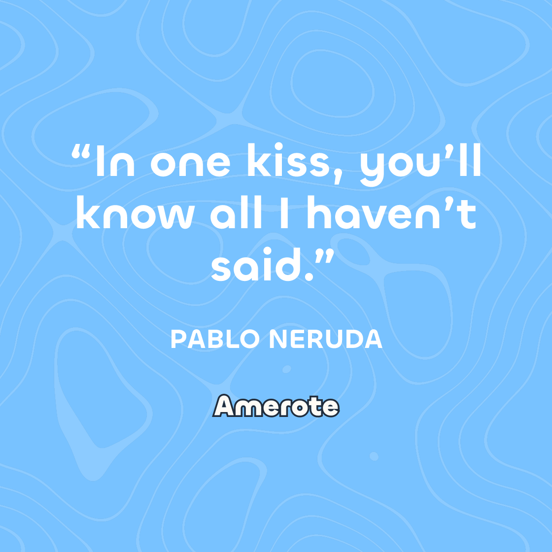 - “In one kiss, you’ll know all I haven’t said.” — Pablo Neruda, 100 Love Sonnets (1959)