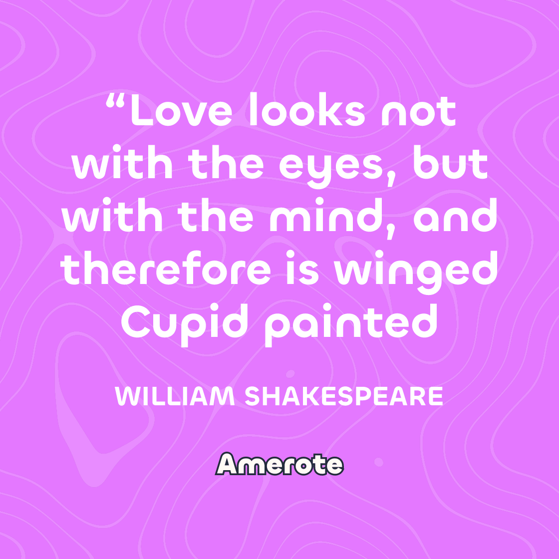 - “Love looks not with the eyes, but with the mind, and therefore is winged Cupid painted blind.” — William Shakespeare, A Midsummer Night’s Dream, Act 1, Sc. 1 (c. 1595)