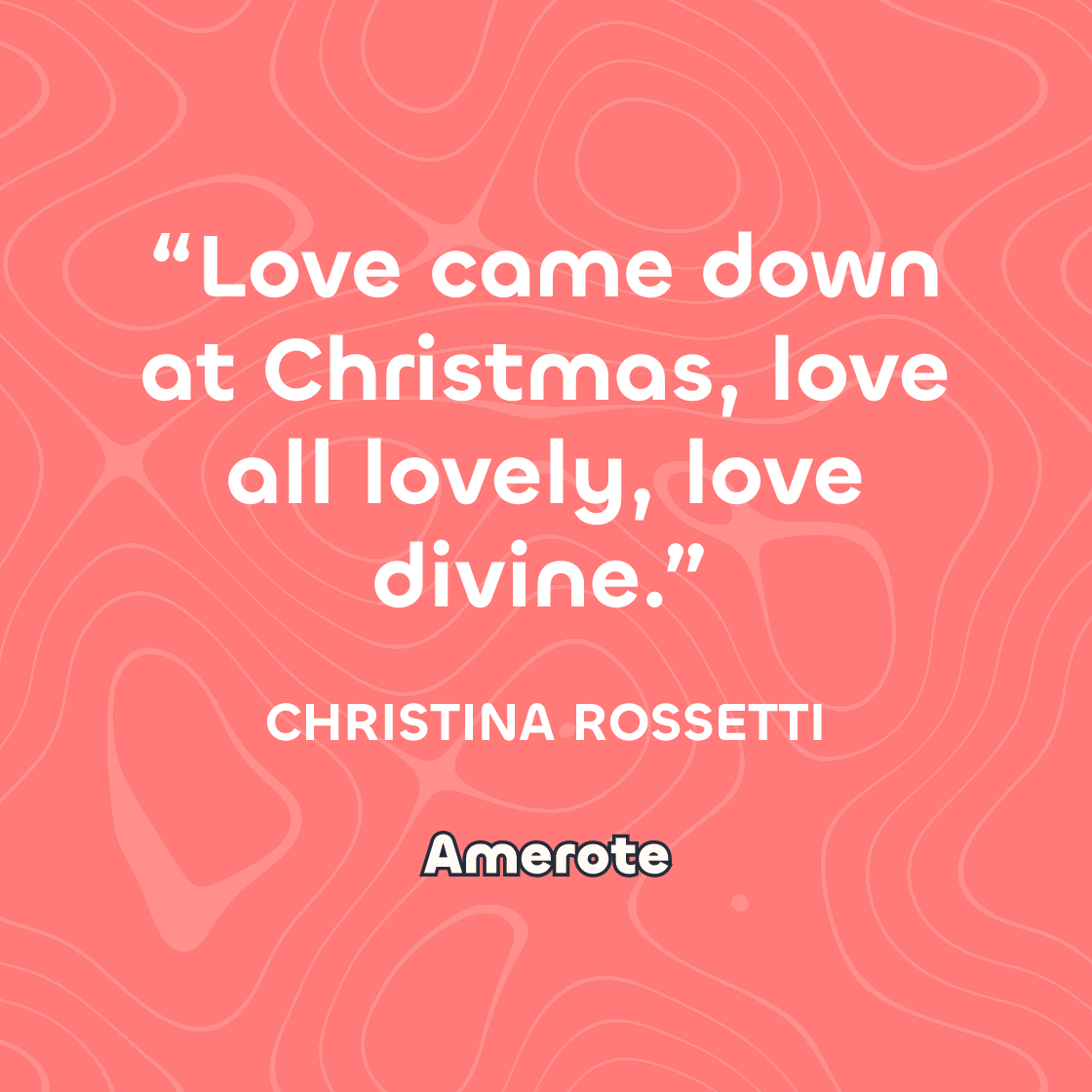 - “Love came down at Christmas, love all lovely, love divine.” — Christina Rossetti, Poems (1885)