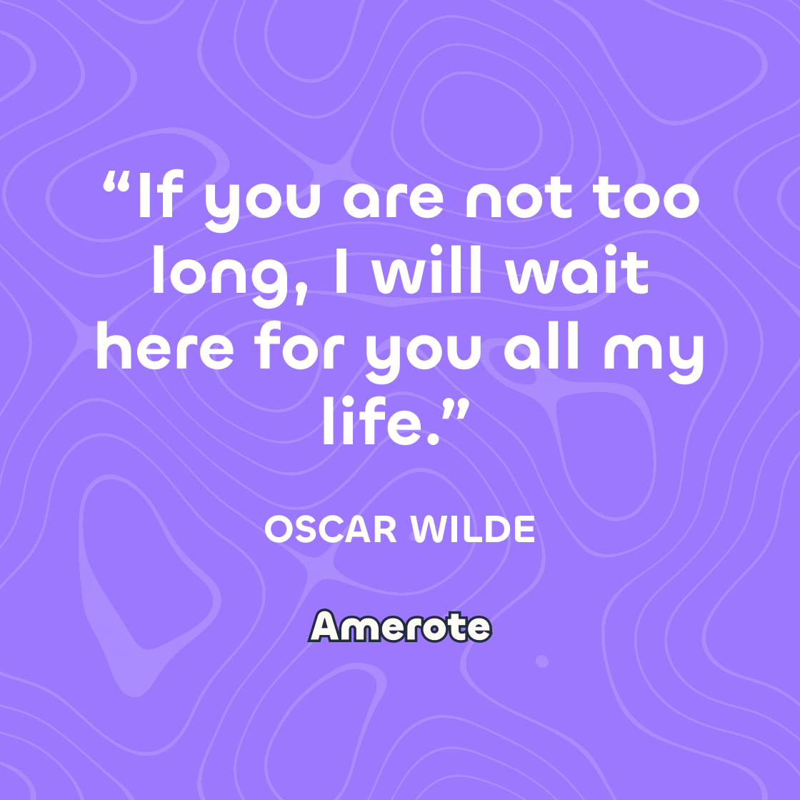 - “If you are not too long, I will wait here for you all my life.” — Oscar Wilde (aphorism, late 19th c.)