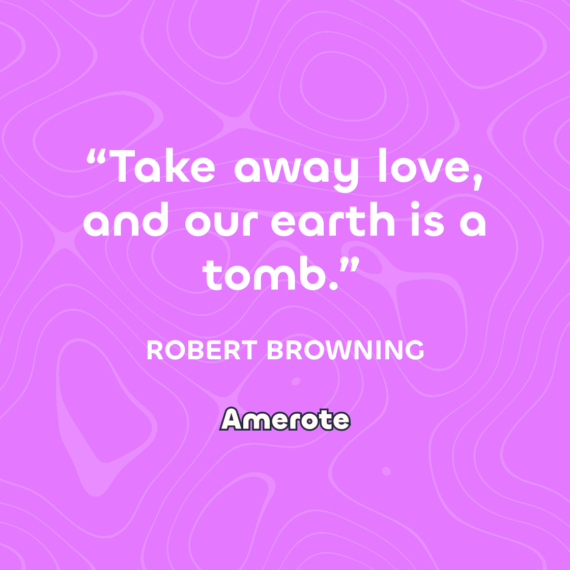 - “Take away love, and our earth is a tomb.” — Robert Browning, A Blot in the ’Scutcheon (1843)