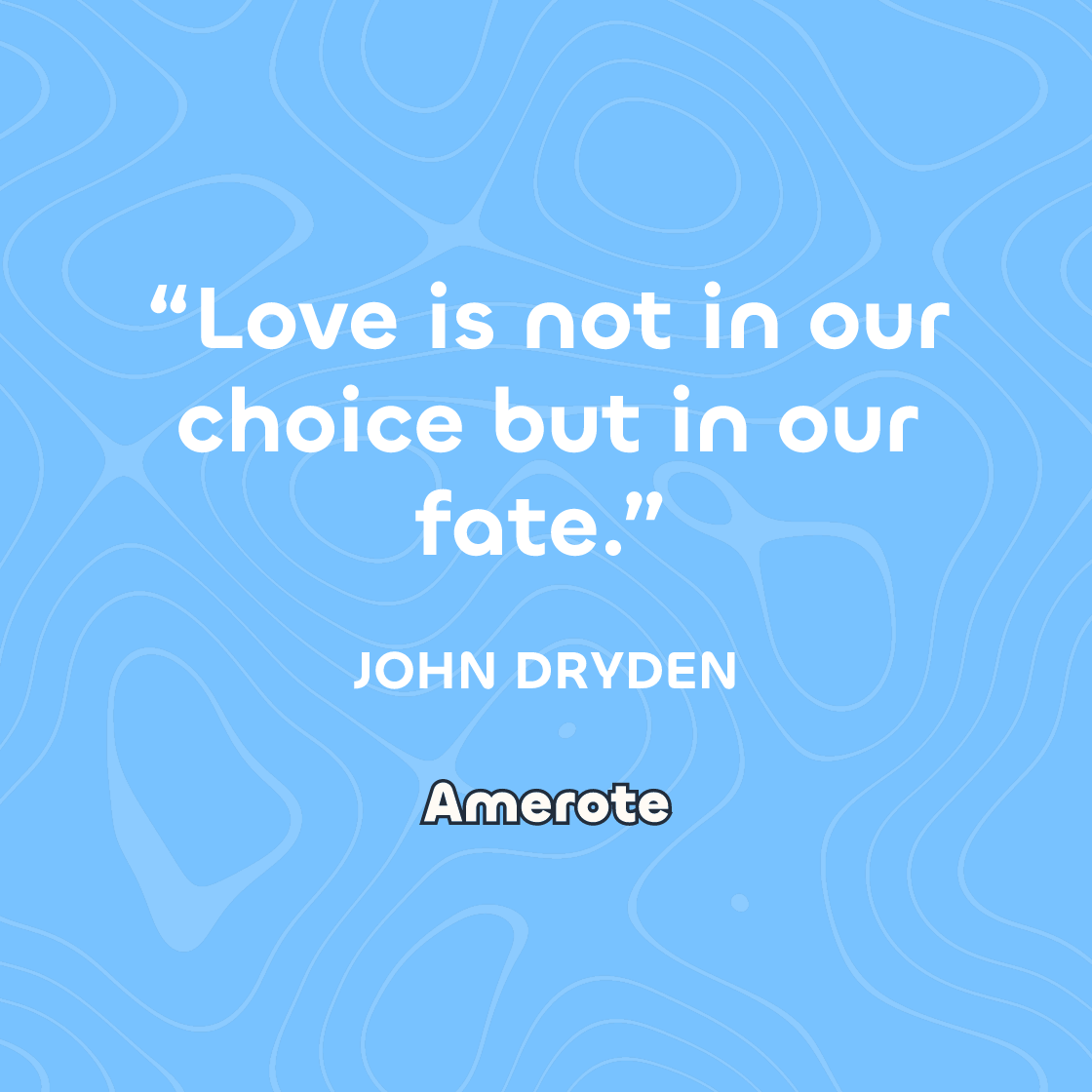 - “Love is not in our choice but in our fate.” — John Dryden, Marriage à la Mode (1672)