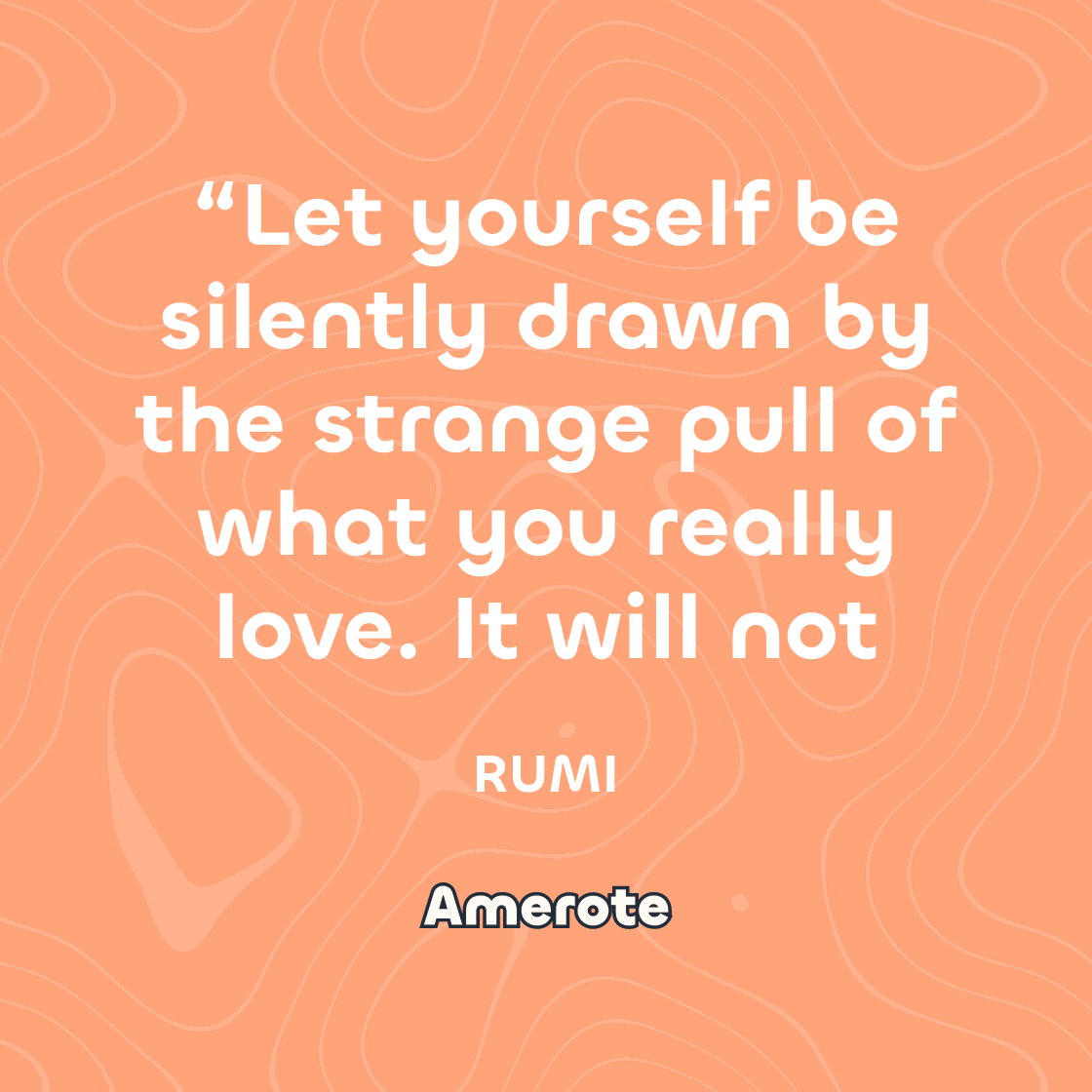 - “Let yourself be silently drawn by the strange pull of what you really love. It will not lead you astray.” — Rumi, Masnavi (13th c.)