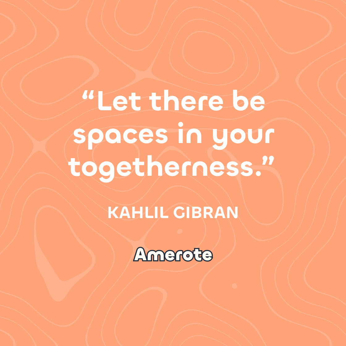 - “Let there be spaces in your togetherness.” — Kahlil Gibran, The Prophet (1923)