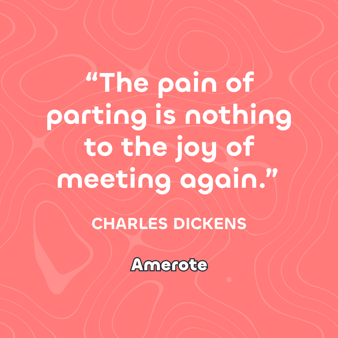 - “The pain of parting is nothing to the joy of meeting again.” — Charles Dickens, Nicholas Nickleby (1839)