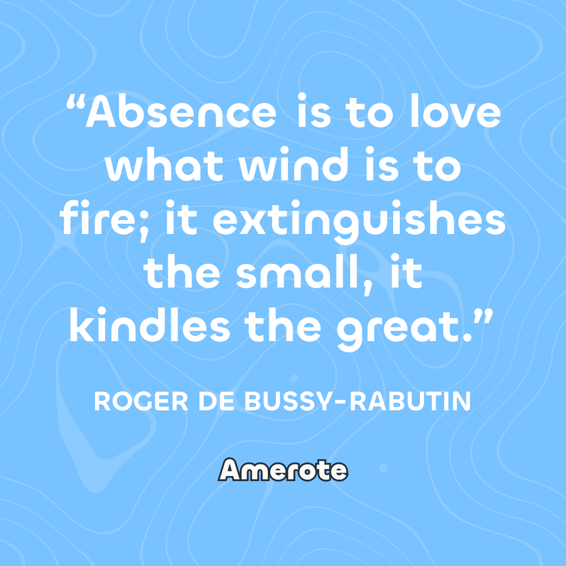 - “Absence is to love what wind is to fire; it extinguishes the small, it kindles the great.” — Roger de Bussy‑Rabutin, Lettres d’amour (1667)