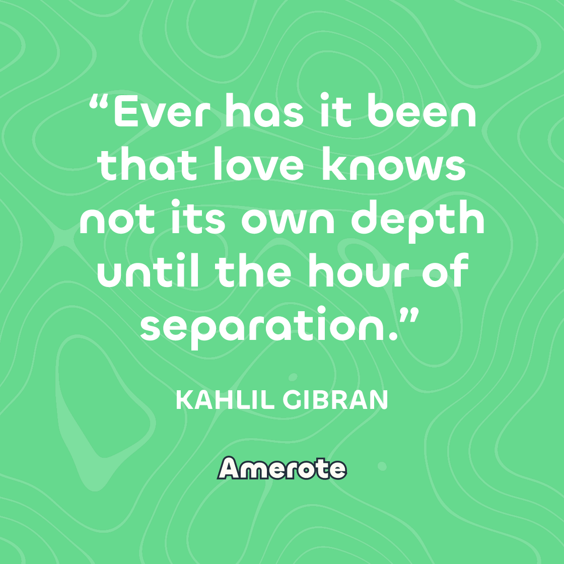 - “Ever has it been that love knows not its own depth until the hour of separation.” — Kahlil Gibran, The Prophet (1923)