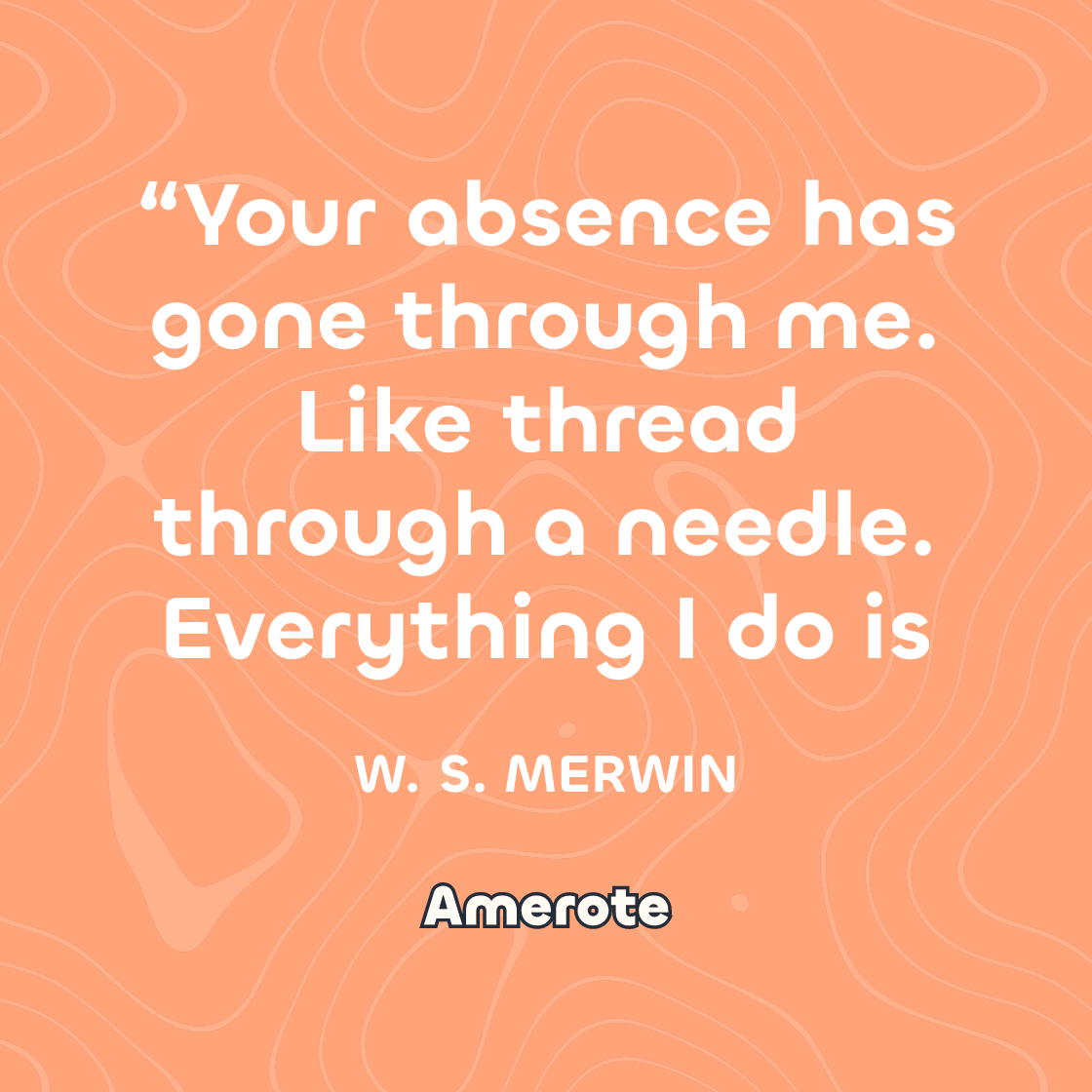 - “Your absence has gone through me. Like thread through a needle. Everything I do is stitched with its color.” — W. S. Merwin, “Separation” (1956)