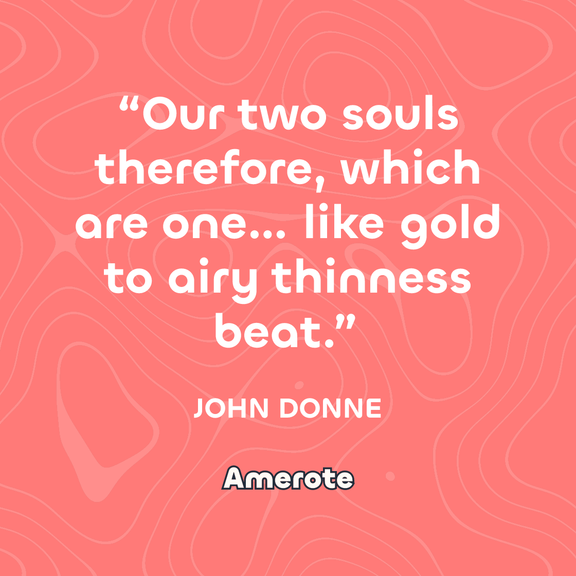 - “Our two souls therefore, which are one… like gold to airy thinness beat.” — John Donne, “A Valediction: Forbidding Mourning” (1633)