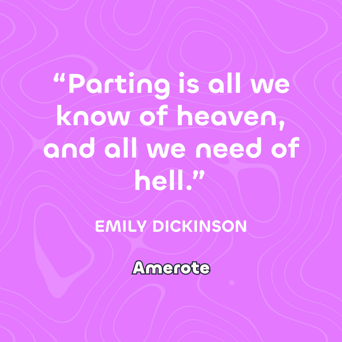 - “Parting is all we know of heaven, and all we need of hell.” — Emily Dickinson, Poem 1737 (c. 1862)