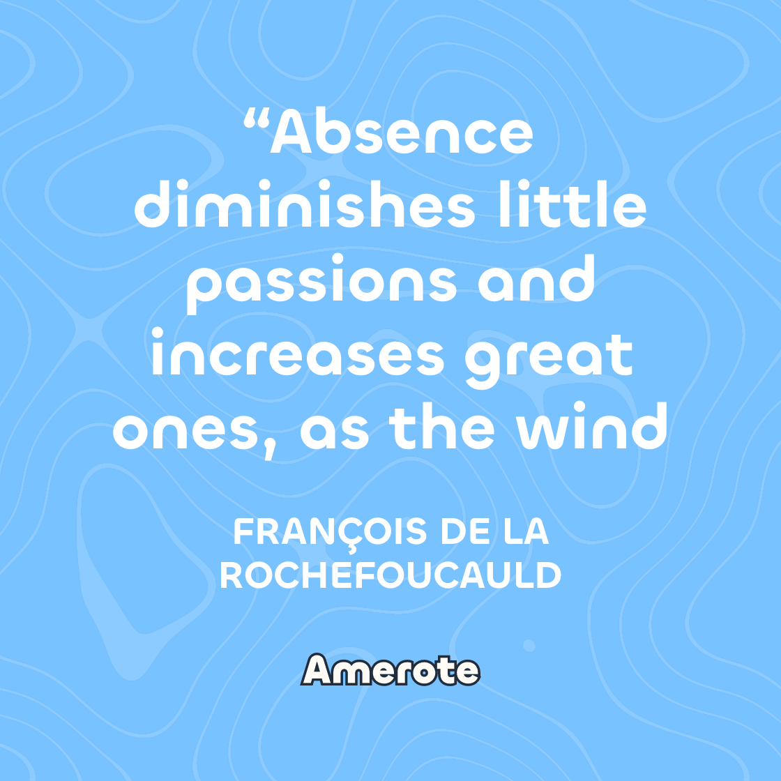 - “Absence diminishes little passions and increases great ones, as the wind extinguishes candles and fans a fire.” — François de La Rochefoucauld, Maximes (1665)
