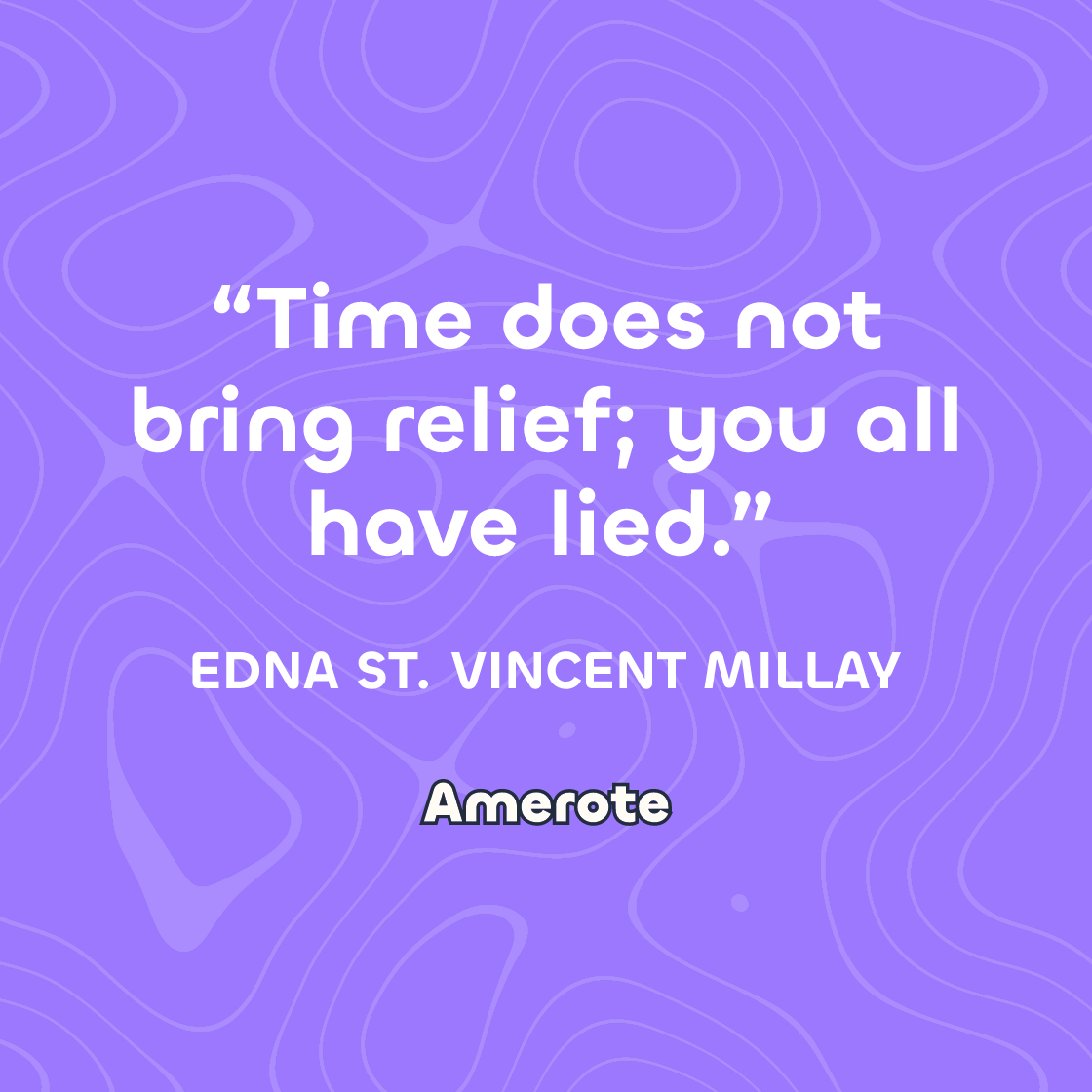 - “Time does not bring relief; you all have lied.” — Edna St. Vincent Millay, Sonnet (1919)