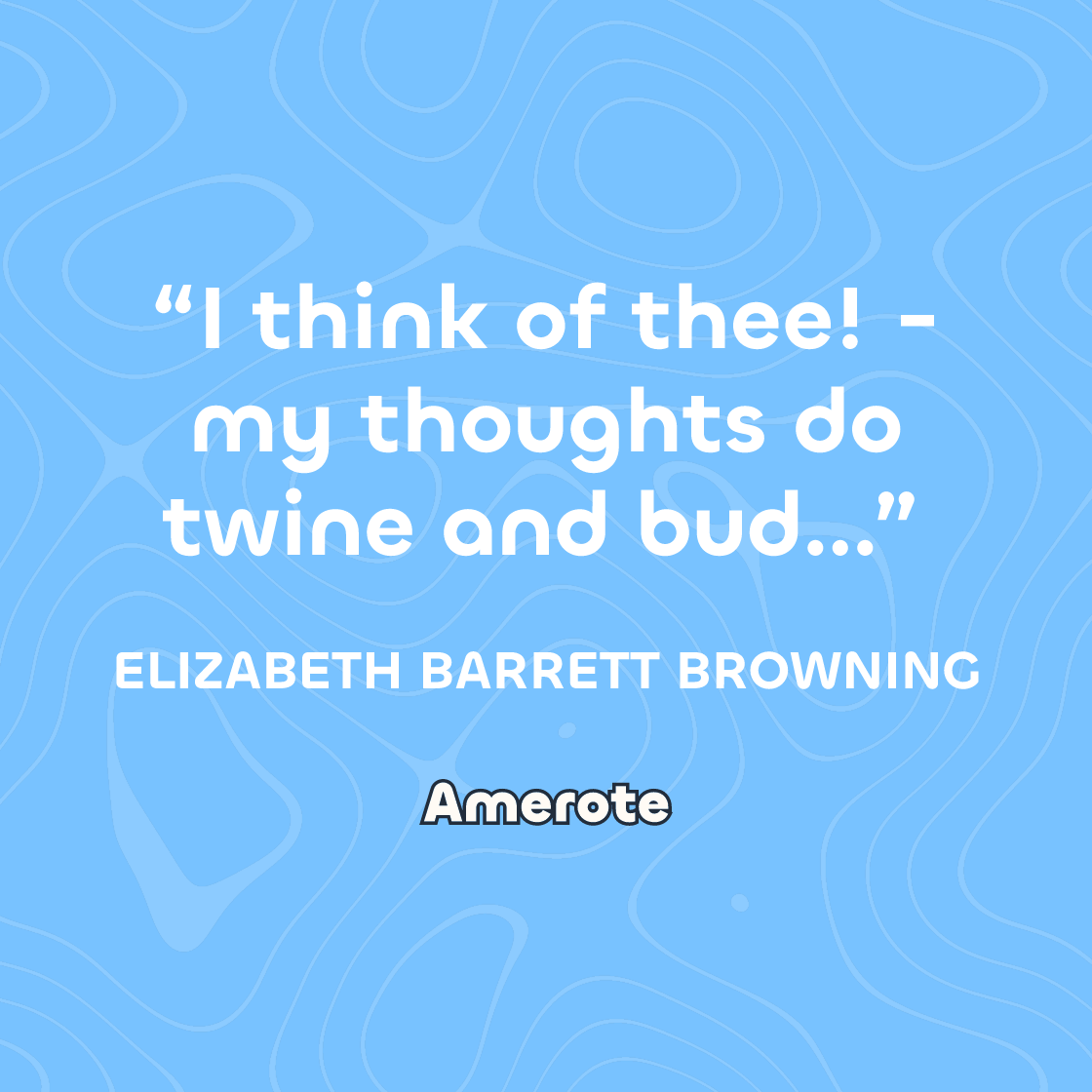 - “I think of thee!—my thoughts do twine and bud…” — Elizabeth Barrett Browning, Sonnets from the Portuguese No. 29 (1850)