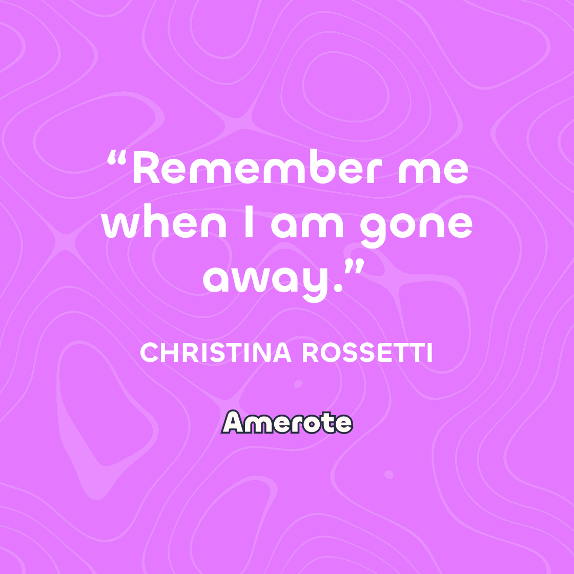 - “Remember me when I am gone away.” — Christina Rossetti, “Remember” (1862)