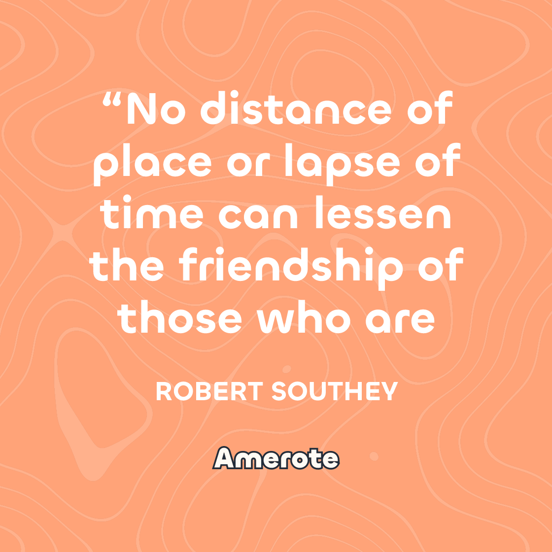 - “No distance of place or lapse of time can lessen the friendship of those who are thoroughly persuaded of each other’s worth.” — Robert Southey, letter to Grosvenor Bedford (1801)
