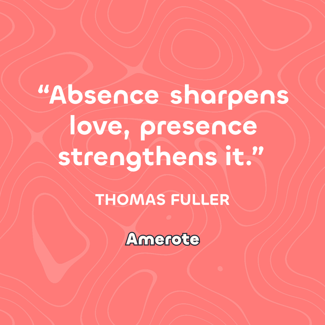 - “Absence sharpens love, presence strengthens it.” — Thomas Fuller, Gnomologia (1732)