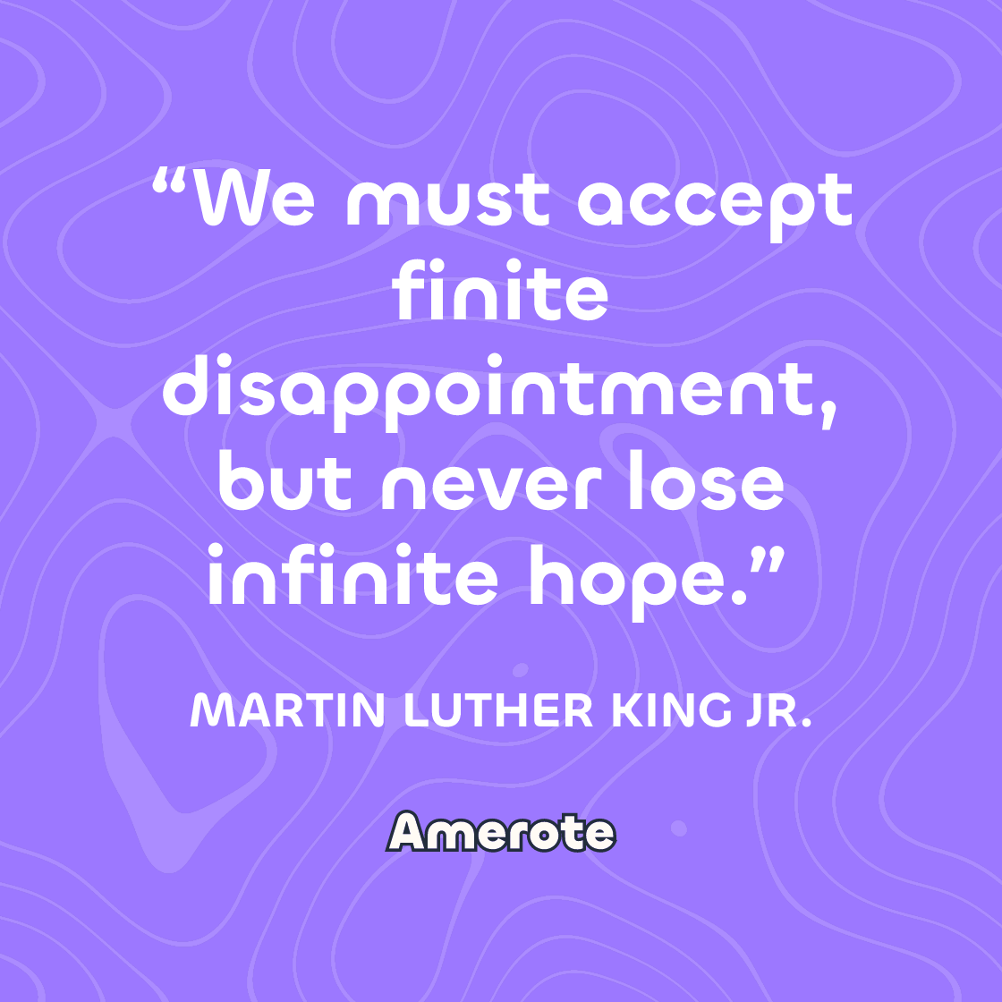 - “We must accept finite disappointment, but never lose infinite hope.” — Martin Luther King Jr., speech (1968)