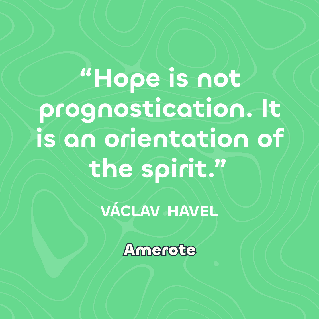 - “Hope is not prognostication. It is an orientation of the spirit.” — Václav Havel, Disturbing the Peace (1990)