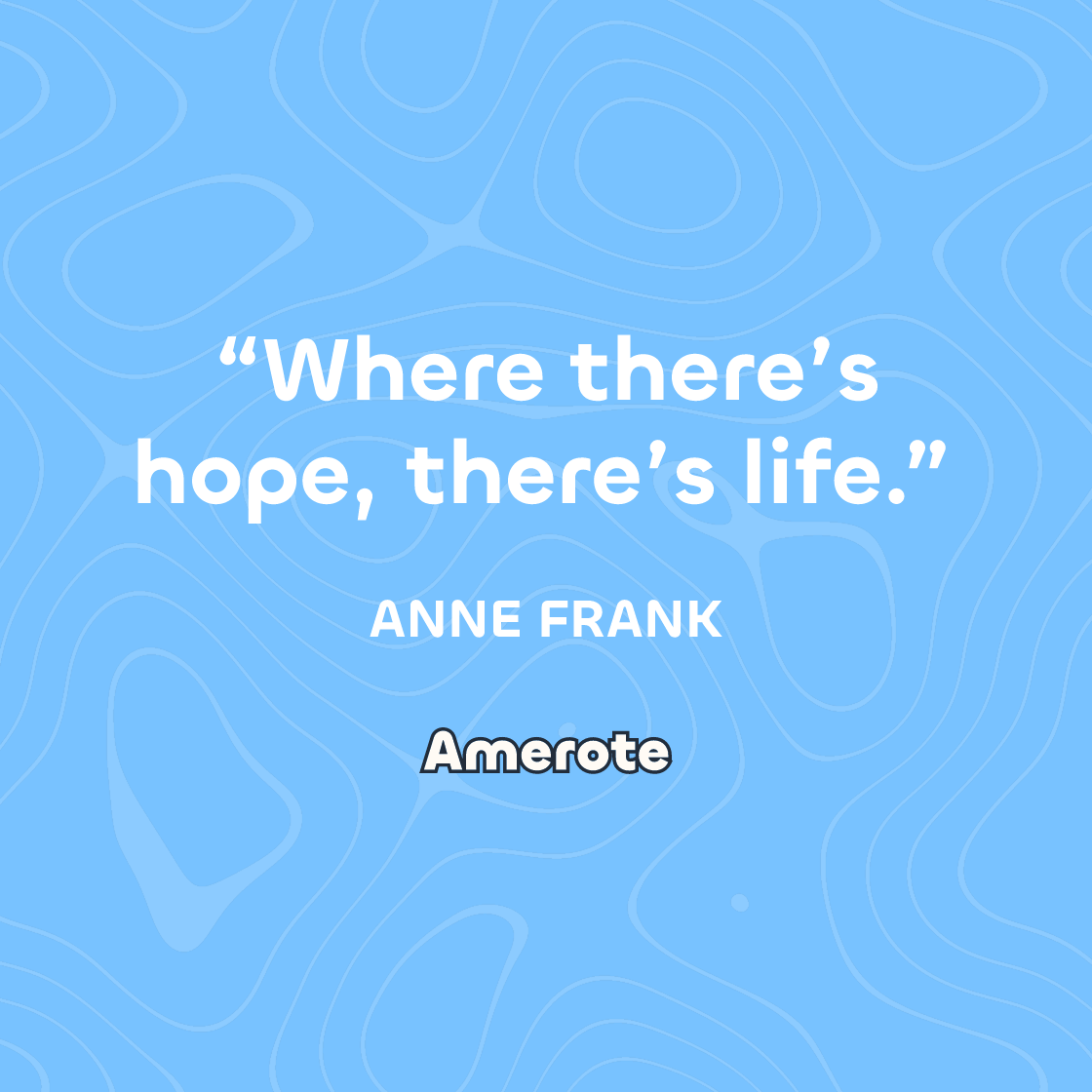 - “Where there’s hope, there’s life.” — Anne Frank, Diary (entry, 1944)