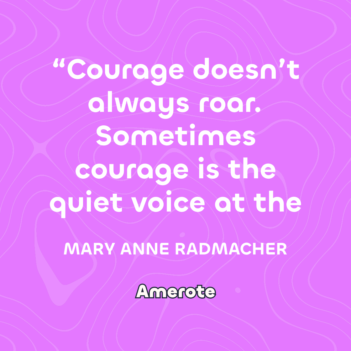 - “Courage doesn’t always roar. Sometimes courage is the quiet voice at the end of the day saying, ‘I will try again tomorrow.’” — Mary Anne Radmacher, Courage Doesn’t Always Roar (2009; aphorism in print since 1990s)