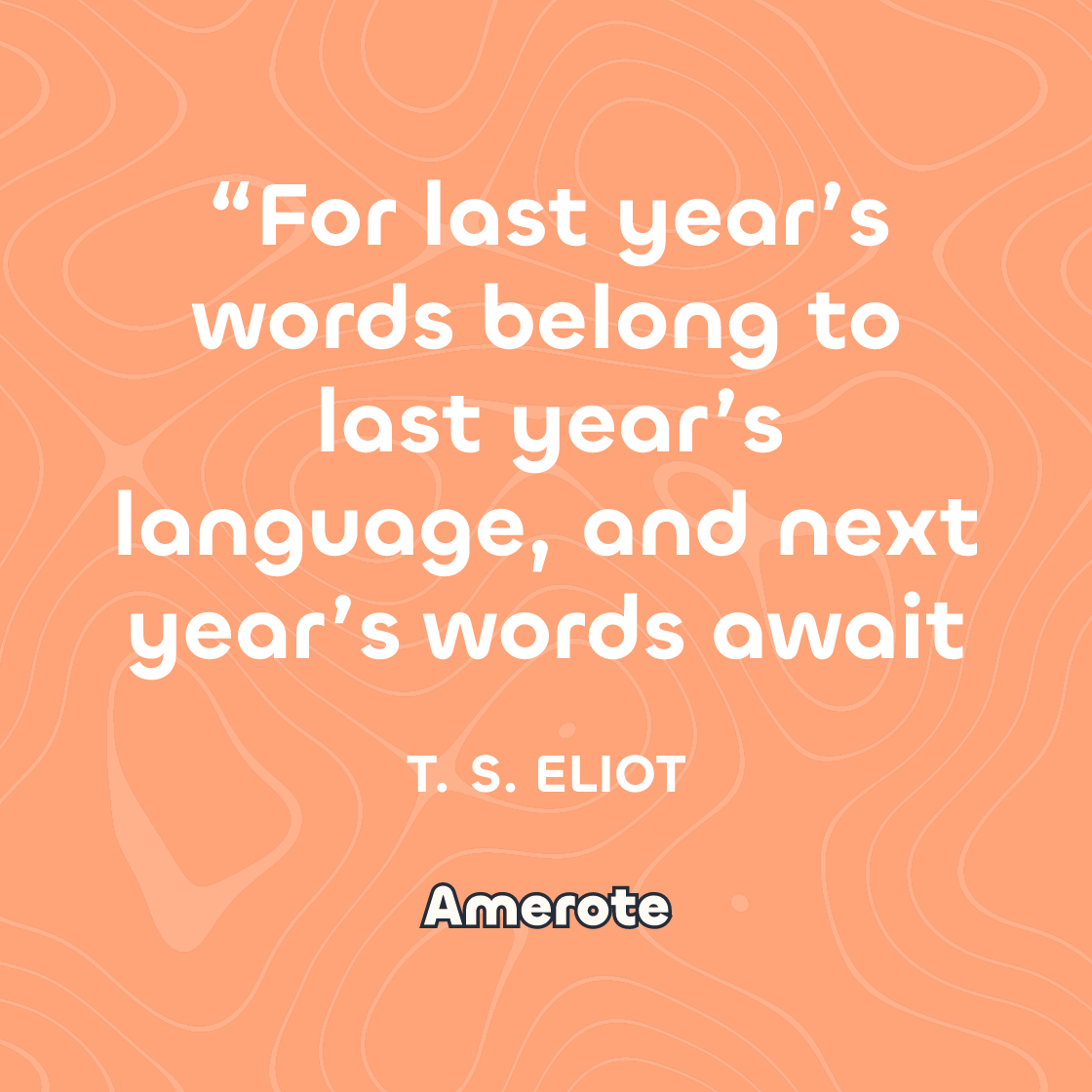 - “For last year’s words belong to last year’s language, and next year’s words await another voice.” — T. S. Eliot, Little Gidding (1942)